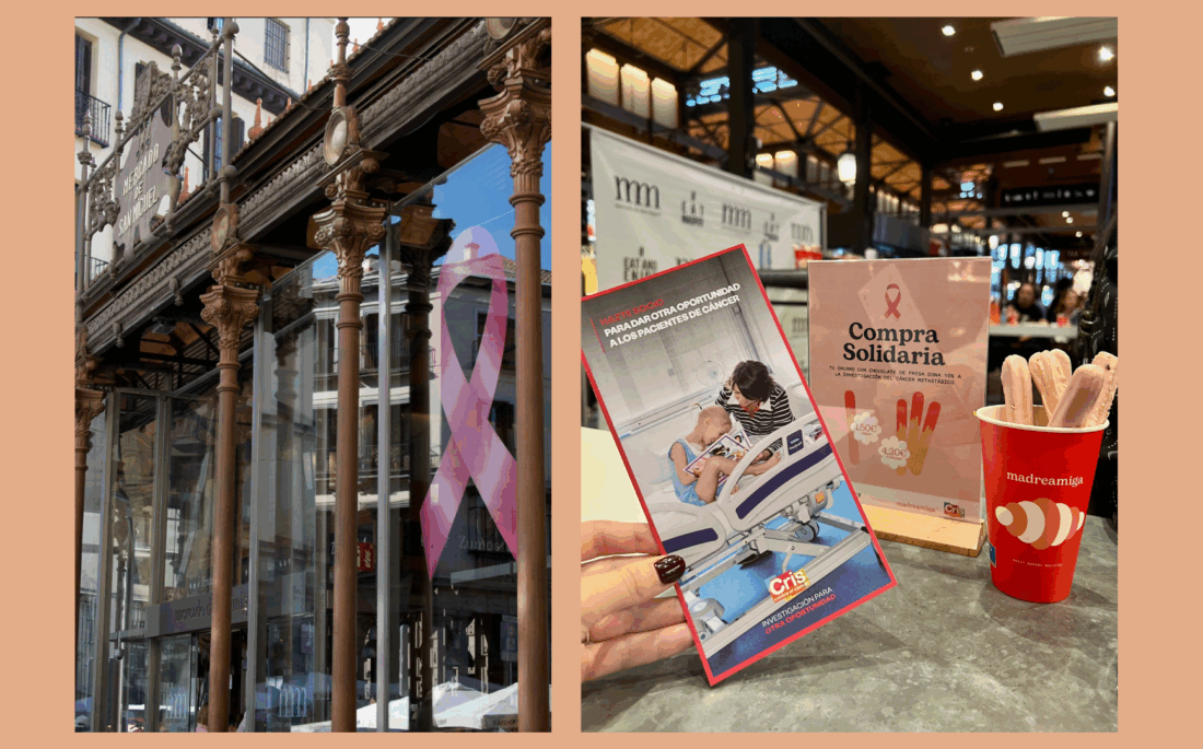 Desde el viernes 17 hasta el domingo 19 de octubre, en el Mercado de San Miguel, todo lo recaudado con la venta de los «churros rosas» de Madreamiga se destinará íntegramente a la Fundación CRIS contra el Cáncer, apoyando la investigación del cáncer de mama metastásico – #Dame5mas.